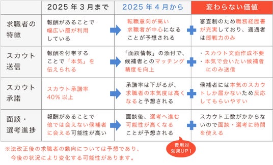 PayCareerは、法改正によって「面談時に報酬を付与する」という仕組みではなくなりますが、これからも「転職の負を解消する」という理念は変わりません。PayCareerは引き続き「本気のスカウトしか届かない」をコンセプトに掲げ、転職活動における「負の解消」に真摯に向き合い、ユーザーの皆さまが本当に必要とする価値を提供し続けます。