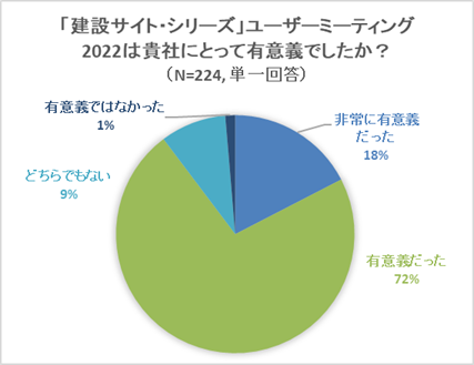 閉会後に実施したアンケートでは、「非常に有意義だった(18%)」「有意義だった(72%)」の合計が90%にのぼり、オンライン形式でも十分な効果を期待できることがわかりました。時間や場所の制限を受けにくく、遠方からも参加しやすいという利点もあることから、今回のアンケート結果を参考に、次回以降の開催方法や事例共有の手法などについて模索していく予定です。