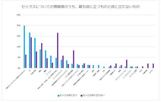 参照にしている情報源は、1位ネット検索、2位アダルトビデオ、3位友人 であり、「パートナー」と回答している人の割合はたったの6% (※4)。また第三者機関による有益な情報提供の場が、現在日本ではあまり見受けられない。