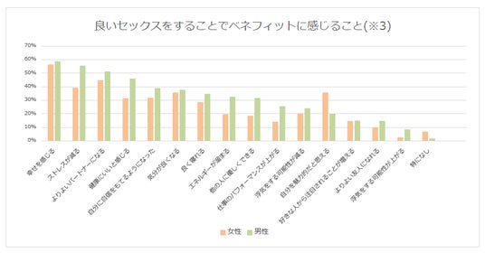 (※3)当社調べ 2024年 グローバルセックスサーベイ セックスアクティブユーザーn=217 充実した性生活を送ることの利点についてそれぞれ回答した人の割合
