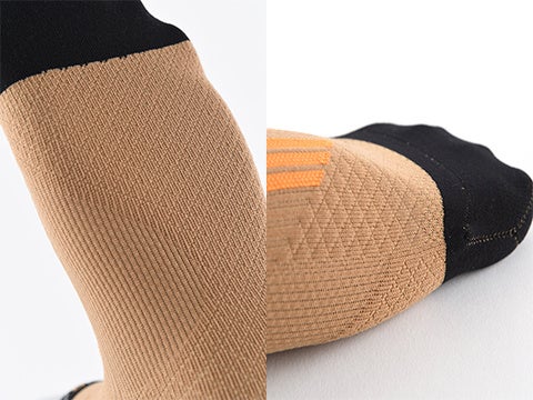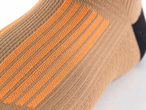 素足感覚に定評のあるRUY SPEEDが進化しました。くるぶし部分に立体感のある畝(うね)を設けることで、岩やブッシュからの衝撃を受けにくくし、ケガのリスクを軽減。また、底面とスネ部分はクッション性と通気性を両立した構造にし、衝撃を和らげつつ快適な通気性を確保。これにより、路面に集中しやすく、思い切ったトレイルランをサポートします。