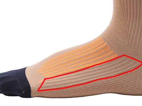 甲のゆるみ防止甲の外側を引き上げる特殊製法により、足底部のゆるみを軽減しフィット感を高めます。