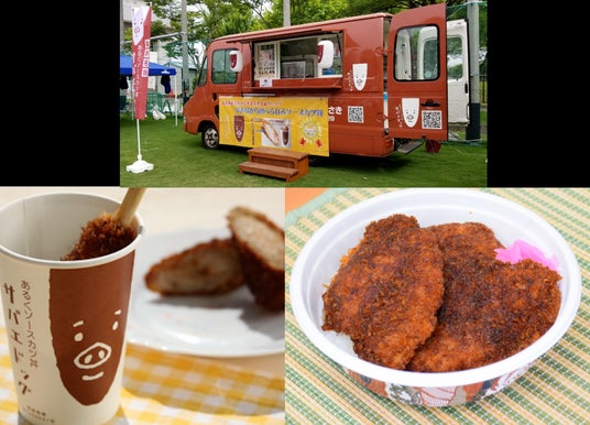 歩くソースカツ丼サバエドッグ、若狭牛コロッケなどを販売。