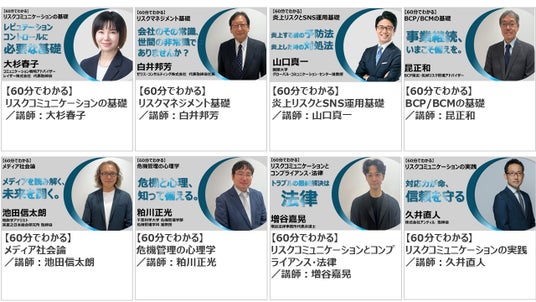 新たなカリキュラムは、自然災害、地政学リスク、ITリスク、SNS運用上のリスク、レピュテーションリスクという現代社会が直面している主要なリスク分野を網羅しており、これらのリスクへの理解と対応力を高めることで、組織の危機管理能力の向上を目指します。