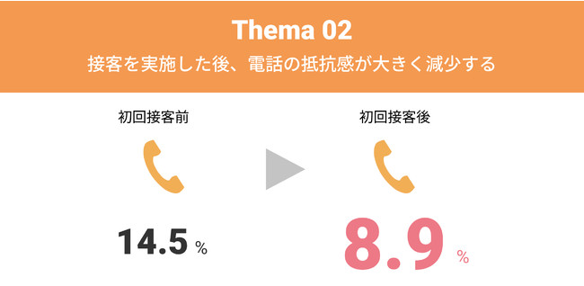 ・新規接客(初回接触)後は電話の抵抗感が低下し、新規接客前の14.5%から8.9%に大幅に低下。