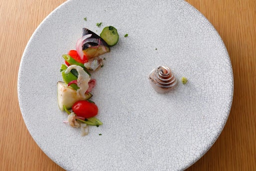 6日間のレストラン営業では、メンターであるカリナリーディレクター 中東篤志シェフ、【日本料理研野】酒井研野シェフとともに考案した、海の未来へのメッセージを込めた5品(前菜2品、主菜、定食、甘味)をコース仕立てで提供しました。