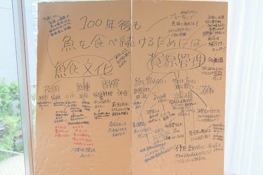 「100年後も魚を食べ続けるためには」をテーマの学生たちのブレストボード