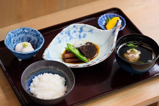メインとして提供した「マグロづくし」膳では、クロマグロの未利用部位を活用。普段捨てられていることも多い血合いは、実は鉄分やビタミンB群が豊富で、調理法を工夫すると、非常に美味しく食べられる部位だということを学んだ学生たち。生臭さや、食感のパサつきを抑えるため何度も試作を重ね、ほろりとした食感と、濃厚な旨味を感じる煮物に仕上げました。お吸い物のつみれには、同じくクロマグロの尾の身を使用。尾びれを常に動かす回遊魚のまぐろの尾の身は、筋力が発達するため、強いうま味としっかりとした肉質が特徴。皮と身の間の筋はコラーゲンが多く含まれるため、加熱することで柔らかな食感となります。資源管理の成果として資源回復傾向にある、クロマグロの現状からの学びと、未利用部位をおいしく活用することは、一尾の価値をあげることにつながるというメッセージを伝えました。
