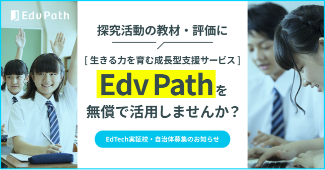 生きる力を育む成長型支援サービス「Edv Path(エデュパス)」を提供するEdv Future株式会社(本社:東京都新宿区、代表取締役:山崎泰正)は、経済産業省が実施する「探究的な学び支援補助金2023」に採択されたことをご報告いたします。採択に伴い、「Edv Path」の実証自治体・学校の募集を開始いたします。