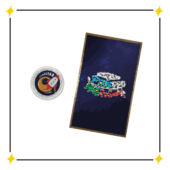 クリア証明とオリジナル缶バッチがもらえる!
