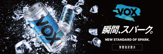 本キャンペーンで登場する「VOX 195ml Straight」は、炭酸総合ブランド「VOX」におけるプロフェッショナル仕様のワンショット。炭酸ガスが抜けにくいアルミ缶に限界ギリギリまで炭酸を充填した1本は、ステイオンタブに指をかけカチッと開封すると瞬間スパーク!充填したてのようなフレッシュな炭酸をそのままデリバリーする195mlのミニマムなワンショットが、イマジネーションを刺激します。