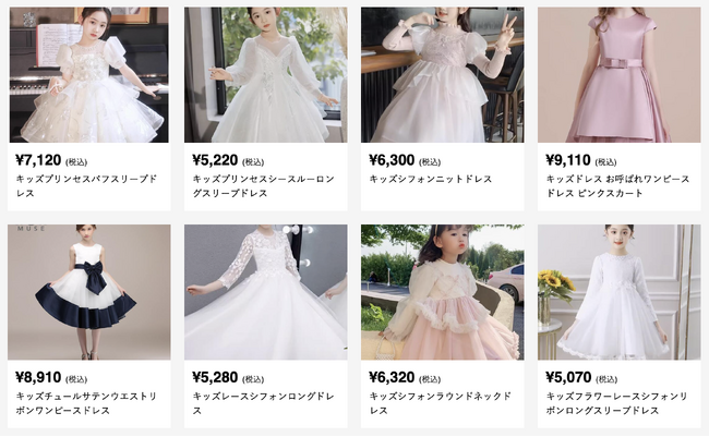 プチドレスではキッズドレスに特化して300商品以上のアイテムが販売されているため、総合通販サイトでキッズドレスを探すよりも探しやすいという特徴があります。