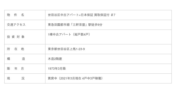 世田谷区中古アパート×日本保証 買取保証付き #7 プロスペクト株主還元物件