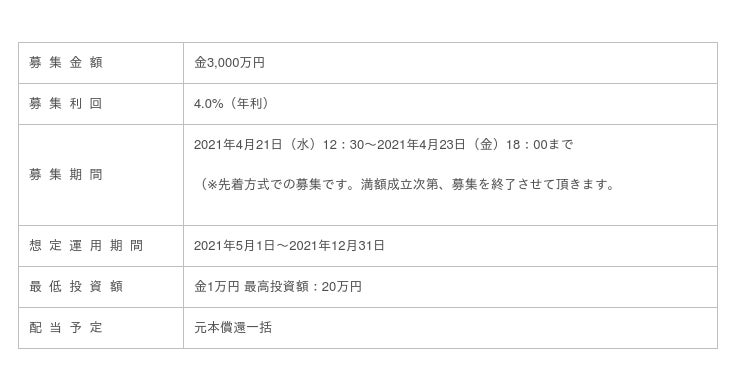 (先着方式での募集です。満額成立次第、募集を終了させて頂きます。)