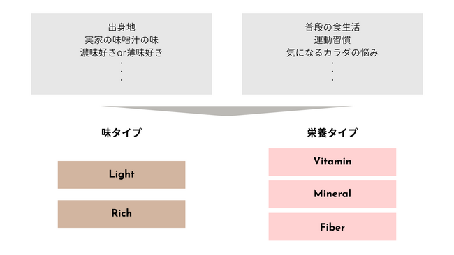 栄養士監修のWEB診断を通じて、1人ひとりの「味の好み」と「足りない栄養素」を分析します。
