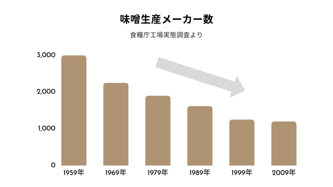 しかし、国内の味噌市場は年々縮小傾向にあり、味噌蔵の廃業が相次いでいます。国内全体では直近35年で400以上の味噌蔵が廃業したと言われています。