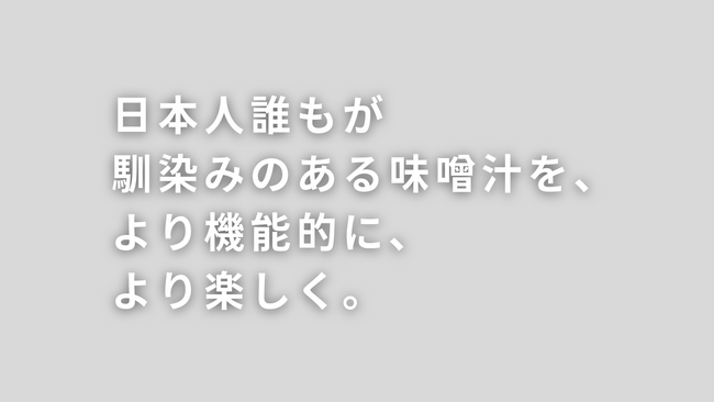 パーソナライズ味噌汁「MISOBOX」を通じて、「日本各地の味噌の多様性を楽しむ」「味噌汁で自分に足りない栄養を摂る」、そんな新しい味噌汁体験を提供できればと思っています。