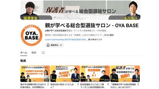 チャンネル名: 保護者が学べる総合型選抜サロンOYA.BASE
