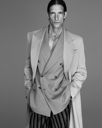 フォトグラファーのマート&マーカス(Mert & Marcus)が、マーク・ヴァンダールーとイヴァン・デ・ピネダが初登場した1996年のキャンペーンを彷彿とさせるスタジオ撮影のポートレートシリーズを制作しました。今回のキャンペーンは、二人のスーパーモデルを今も昔も変わらぬヴェルサーチェのアイコンとして称えています。二人は流れるようなサテンのコートとテーラードのセットアップを身にまとい、ヴェルサーチェのモダンな男性らしさを見事に表現しています。
