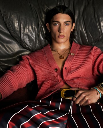 モデルのオタワ・クワミ(Ottawa Kwami)、アンソニー・トマソン(Anthony Thomason)、さらにマーク・ヴァンダールー・ジュニア(Mark Vanderloo Junior)も、モノカラーのニットウェア、ボディフィットのトップス、ダイヤモンドを散りばめたレザー、ゴールドのジュエリー、ヴェルサーチェのオールオーバーモチーフをあしらったレディトゥウェアのセパレートやアクセサリーを身に着けて、このキャンペーンに出演しています。