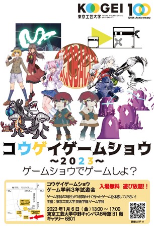 東京工芸大学(学長:吉野弘章、所在地:東京都中野区、以下、本学)は、2023年1月6日(金)に「コウゲイゲームショウ2023(以下、本ゲームショウ)」を開催します。本ゲームショウは、2023年に迎える本学創立100周年を記念するイベントで、演習授業を通じて学生自らが制作したテレビゲームやVRゲーム、ボードゲームなど、ゲーム作品8点を一般公開し、試遊いただく企画です。