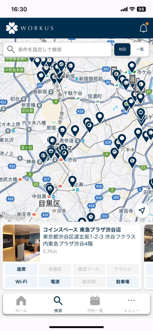 ラウンジ、個室ブース、会議室など、複数ブランドの多様なワークスペースを1つのアプリで利用できます。