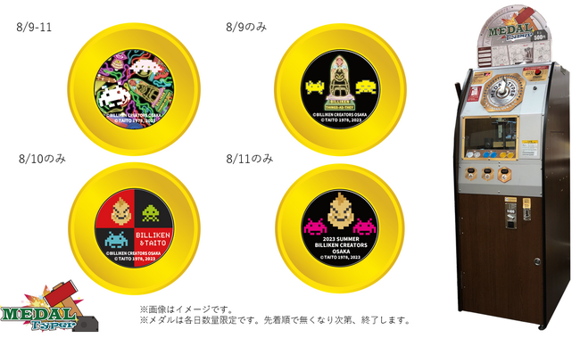 株式会社タイトーのご協賛により、同社が1978年に開発・発売し世界的に大ブームを巻き起こしたシューティングゲーム『スペースインベーダー』とビリケンさんの特別コラボデザインのメダルタイパーを設置いたします。