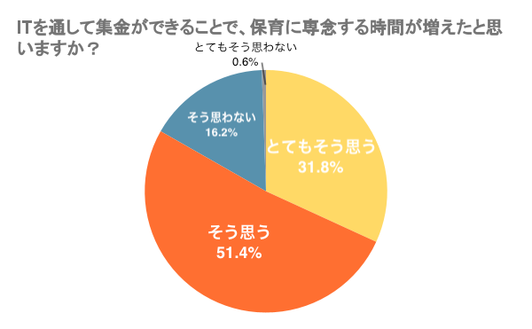 ITによる集金によって8割以上の保育者が「保育に専念する時間が増えた」と実感