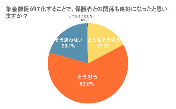 これは、集金催促のために保護者へ声がけをする必要がなくなり、負担が減少したことが大きいのではと推測できます。