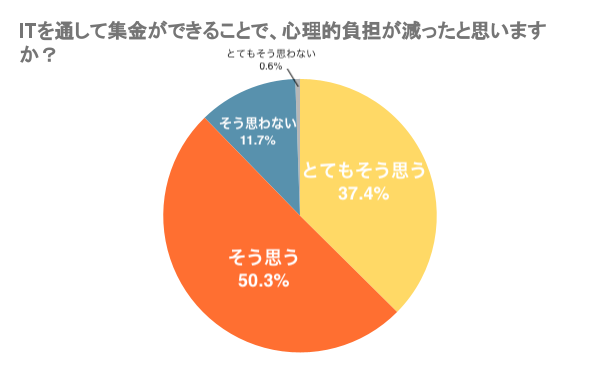 エンペイ導入後のITによる集金によって、約9割の保育者が「心理的負担が減った」と回答しました。