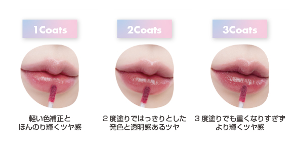 ・1度塗りから3度塗りまで、異なるツヤ感や発色をお楽しみいただけます。