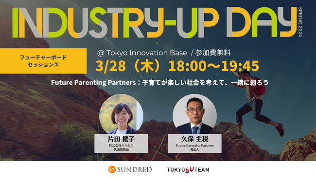 東京, 2024年3月25日(月) - 株式会社ハハカラ代表取締役、片田櫻子氏が、子育てを取り巻く現状に革新をもたらすことを目的とした「Future Parenting Partners」のセッションにおいて、2024年3月28日(木)に登壇しインスピレーショントークをおこないます。このイベントは、SUNDRED株式会社主催の下、TOKYO INNOVATION BASE(東京・有楽町)にて開催され、「Industry-Up Day Spring 2024」のプログラムの一環として行われます。