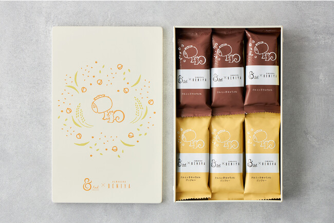 和菓子のおこしと洋菓子の要素キャラメルが合わさった、新たなおいしさと驚きをお楽しみください。