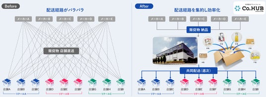 特にメーカー企業からの販促物が多いドラッグストアチェーンにおいては、複数のメーカー企業の販促物を当社がまとめて週次で共同配送するサービス「Co.HUB」を2022年から展開し、配送の効率化及びCO2削減というSDGsの観点からも多数のドラッグストアチェーンに導入されております。世界的な燃料費高騰や物流の「2024年問題」などを受けて、物流コストは引き続き上昇していくことが予想される中、当社の販促物共同配送サービス「Co. HUB」はこうした物流課題に応えていくビジネスモデルであると考えており、より一層の事業展開を行ってまいります。