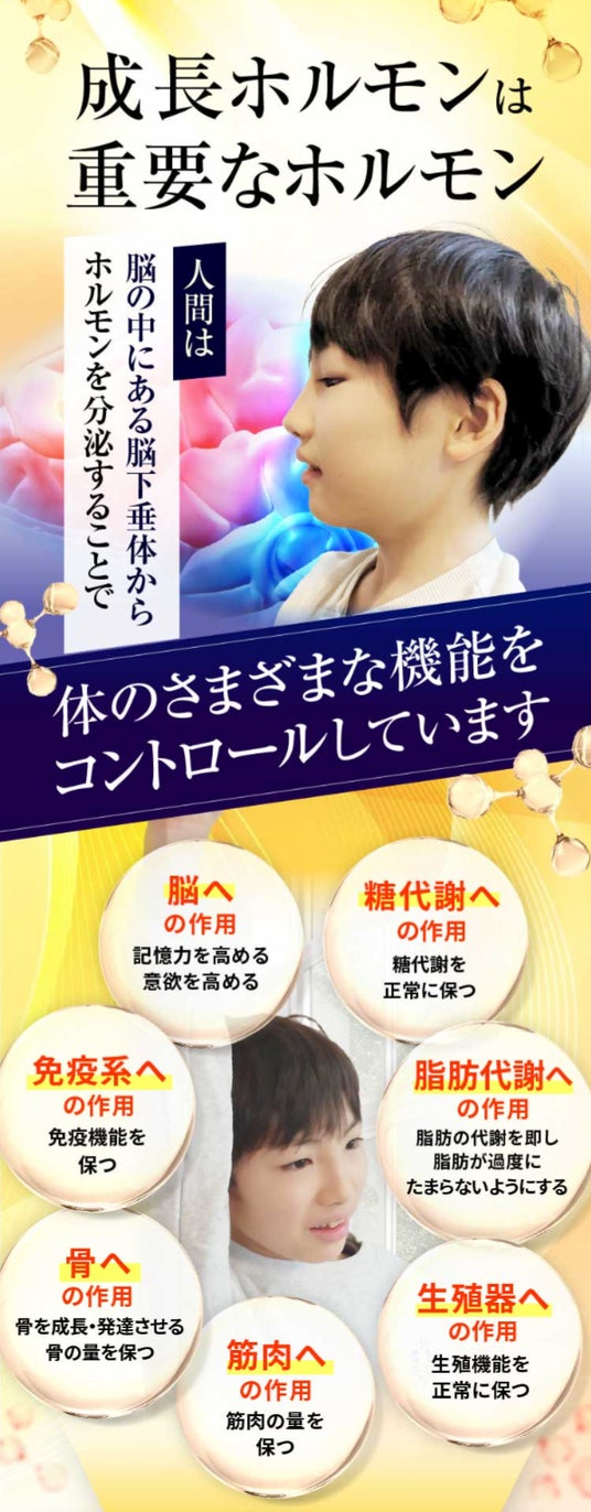 成長期のこどもの身長に必要不可欠な成長ホルモンをサポートします。