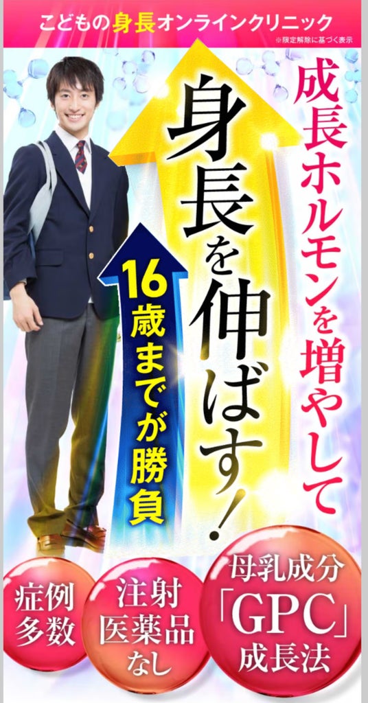 薬も注射も使わずに、成長ホルモンを増やし、子どもの身長を伸ばすオンラインクリニックです。