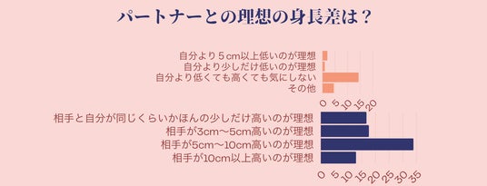 とはいえ、やはりあくまでも理想の身長差はあるはず。次の質問で、「理想の身長差」の調査結果を発表します。