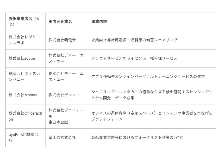 経済産業省は、新規事業の担い手の数を増やす観点から、補助事業(※1)により、大企業等の人材が、所属企業を辞職せずに、自ら外部資金調達や個人資産の投下等により起業して行う新規事業「出向起業」を支援しています。このたび、令和3年7月26日から10月1日まで2次公募を行い、外部審査委員会での審査を経て、新たに6事業を採択しました。