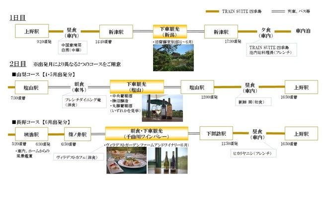(2)1泊2日(山梨・長野)コース ※コース詳細はホームページをご参照ください。https://www.jreast.co.jp/shiki-shima/
