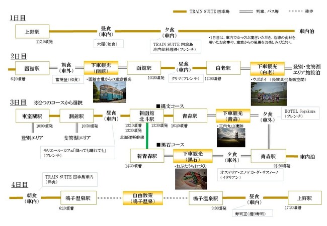 (1)3泊4日コース ※コース詳細はホームページをご参照ください。https://www.jreast.co.jp/shiki-shima/