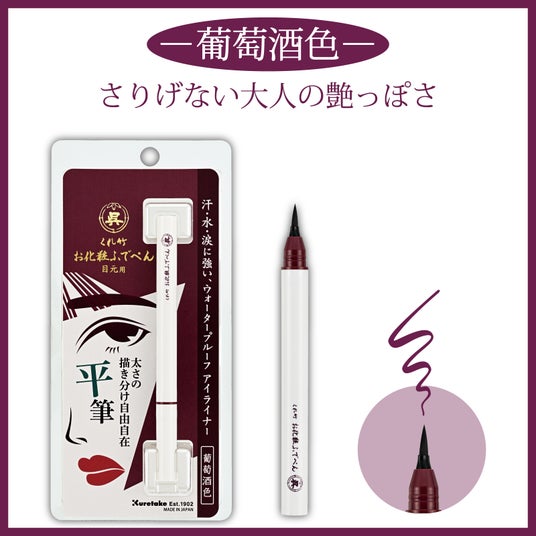 株式会社呉竹(本社:奈良県奈良市、代表取締役社長:山際 義敬、以下「呉竹」)は、アイライナー「くれ竹 お化粧ふでぺん 目元用/平筆」に、新色”葡萄酒色”(ぶどうしゅいろ)、”和紅茶色”(わこうちゃいろ)を数量限定で発売いたしました。