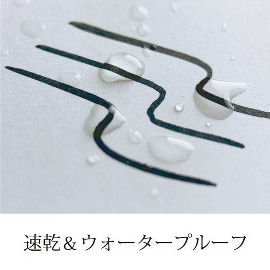 落ちにくさにこだわり、汗・水・涙に強いウォータープルーフとなっています。肌に描いた後は非常に早く乾くため、アイラインを引いたあとすぐにビューラーなど次のメイクに移っていただけます。