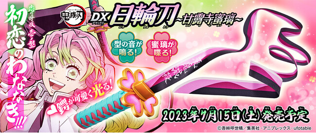 株式会社バンダイ トイディビジョンは、テレビアニメ『鬼滅の刃 刀鍛冶の里編』に登場するアイテム“日輪刀”を再現した音声搭載なりきり玩具「鬼滅の刃 DX日輪刀」シリーズから「鬼滅の刃 DX日輪刀~甘露寺蜜璃~」(6,930円・税10%込、6,300円・税抜き)を2023年7月15日(土)に発売します。発売に先駆けて、2023年5月12日(金)より予約を開始します。