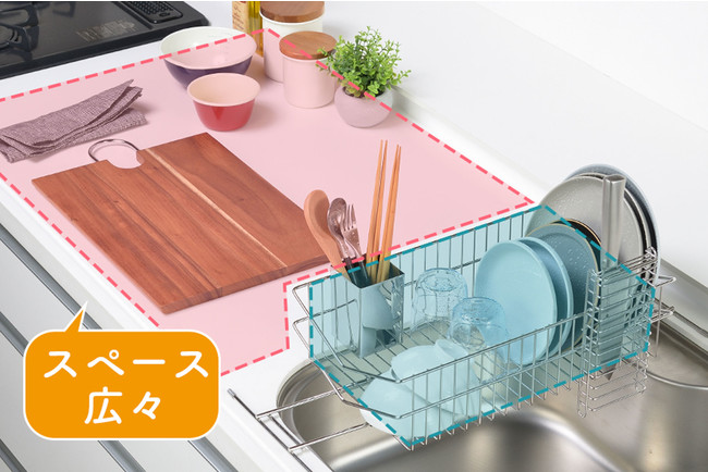 ・洗い物の水滴はシンクに直接落ちるので水捨てが不要です。
