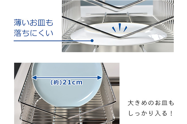 ・側面がV字型になっているので、食器等を出す時に引っ掛からず取り出しやすいです。高さも確保しているのでたくさん収納できます。