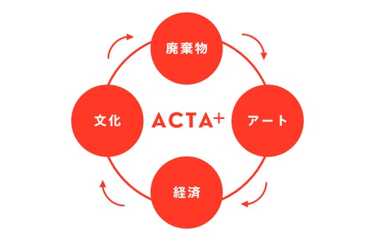 ACTA+が目指す「廃棄物アート循環」の図私たちが本事業によって目指しているのは、廃棄物を素材としたアート作品の流通によって経済を循環させることです。廃棄物という資源が本当に資源としての役割を担うことができれば、当然その名称は変化するはずだと考えます。
