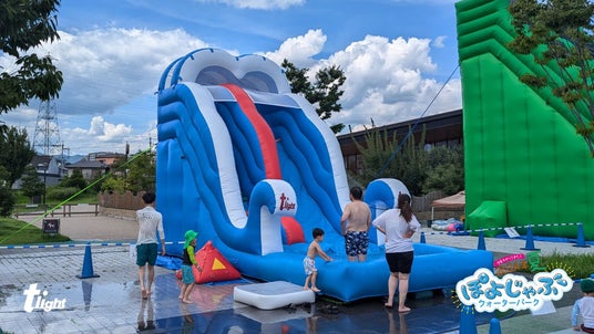 トライト株式会社(本社:大阪府守口市、代表:山田 康生)は、2024年7月13日(土)から8月25日(日)まで、小学生以下のお子様を対象とした夏休み限定の水遊びイベント「ぽよじゃぶウォーターパーク2024」を安満遺跡公園(大阪府高槻市)のサンスター広場エリア及び、人工芝エリアで好評開催中です。今シーズンは人気のスライダーが4つになってよりパワーアップしました。わんぱくキッズからプールデビュー前の小さなお子様までご自分にあったタイプでお遊びいただけます。会場内には常設テントを数カ所設置しており日陰エリアを確保していますが、連日の猛暑日を考慮し、ポップアップテントをお持ち込みいただけるようになりました。