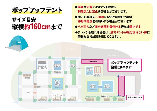 【熱中症対策】連日の猛暑日を考慮し一部エリアにて日除け用ポップアップテントのお持込みをいただけるようになりました。