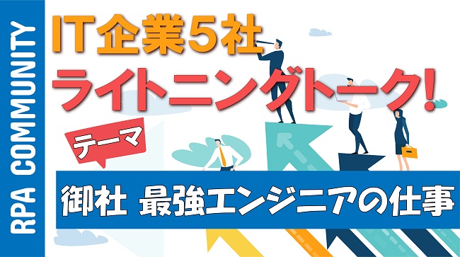 自動化、RPA、DX、業務改善等をキーワードとして学ぶコミュニティ。今回は、IT企業5からエンジニアを登場して普段どんな仕事をしているかトークします!