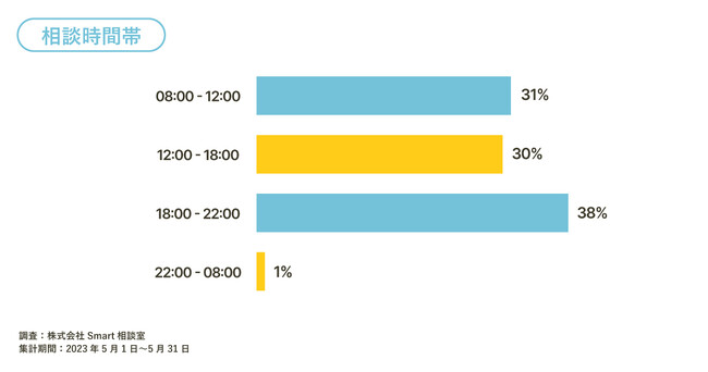 併せて、2023年5月1日~2023年5月31日の1ヶ月間における、Smart相談室で相談が行われた時間帯を集計しました。